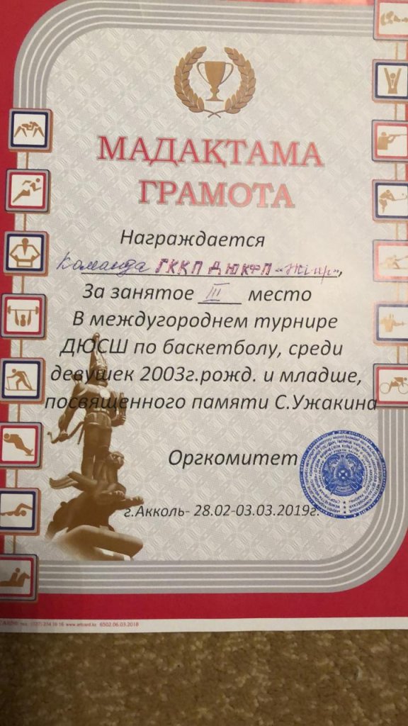 2019 жылғы 28 ақпаннан 3 наурызға дейін Ақкөл қаласында 2003 жылы туылған қыздар арасында С.Ужакинді еске алуға арналған сайыс өтті. БЖСМ қалалық балалар арасындағы «Жігер» МКҚК командасының құрамына кірген Еленовка орта мектебінің оқушылары (қыздары) ІІІ орын алды....
