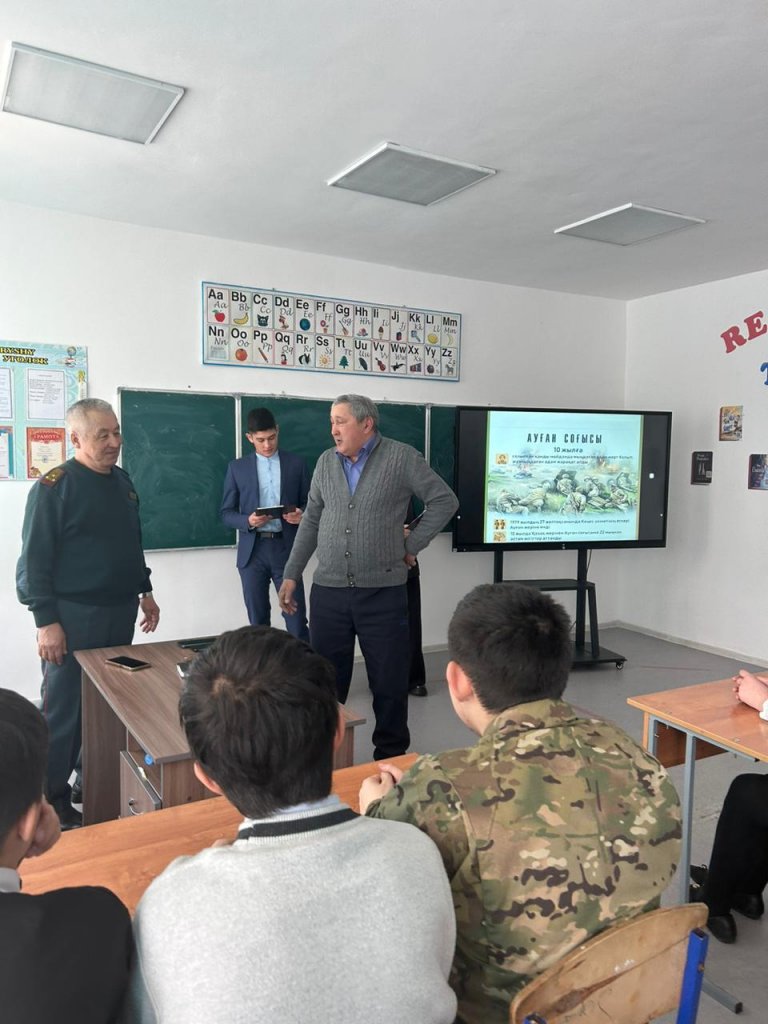 15 ақпан 2024 жылы Еленовка ауылының ЖОББМ Алғашқы әскери дайындықты оқыту мен жасөспірімдерге әскери-патриоттық тәрбие жылдық жоспары бойынша Кеңес әскерлерінің Ауған елінен шығарылғанына 35 жыл толуына орай, Ауған соғысына қатынасушы жауынгер-интернационал Тургунбеков Сағындық Елубайұлы арнайы шақырылып, 8,9,10,11 сынып оқушыларымен кездесу ұйымдастырылды. Дайындалған іс-шаралар екі бөлімнен жасалды. І - бөлімде Ауған соғысы туралы презентация қойылды, құттықтау рәсімі өткізілді. ІІ - бөлімде автоматты бөлшектеу және құрастыру, қолды жазып бүгу, денені жатып көтеру, биік белтемірге тартылу номинация бойынша әскери-патриоттық сайыс өткізілді. АӘТД ұйымдастырушы-оқытушысы Акубаев С.Т.