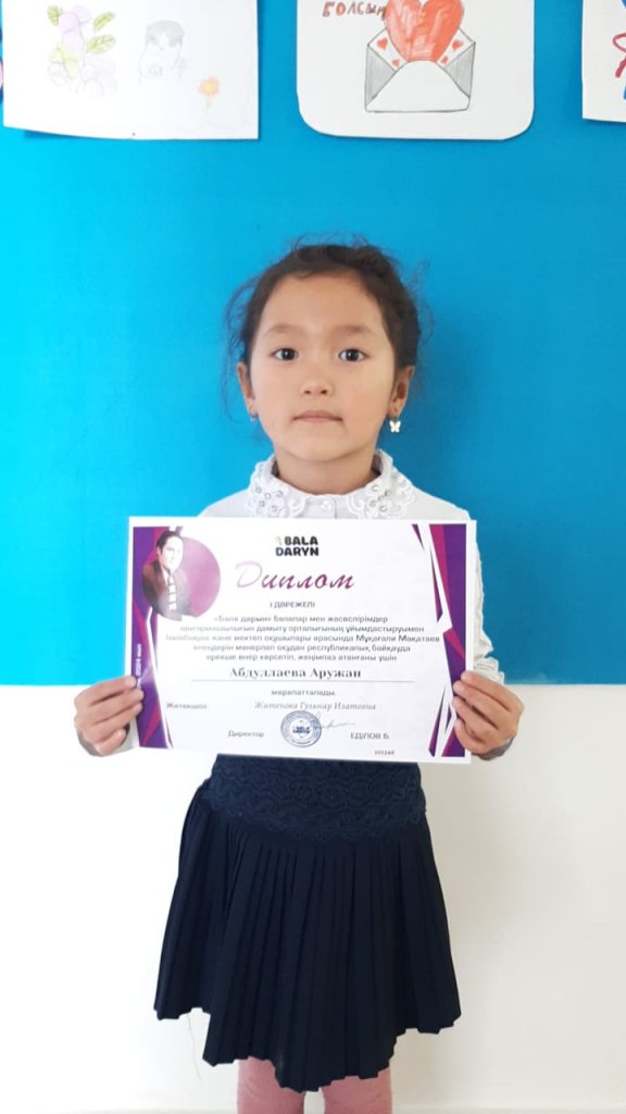 "Бала дарын" балалар мен жасөспірімдер шығармашылығын дамыту орталығының ұйымдастыруымен мектеп оқушылары арасында Мұқағали Мақатаев өлеңдерін мәнерлеп оқудан республикалық байқауда ерекше өнер көрсетіп, жеңімпаз атанғаны үшін 1 "А" сынып оқушылары...