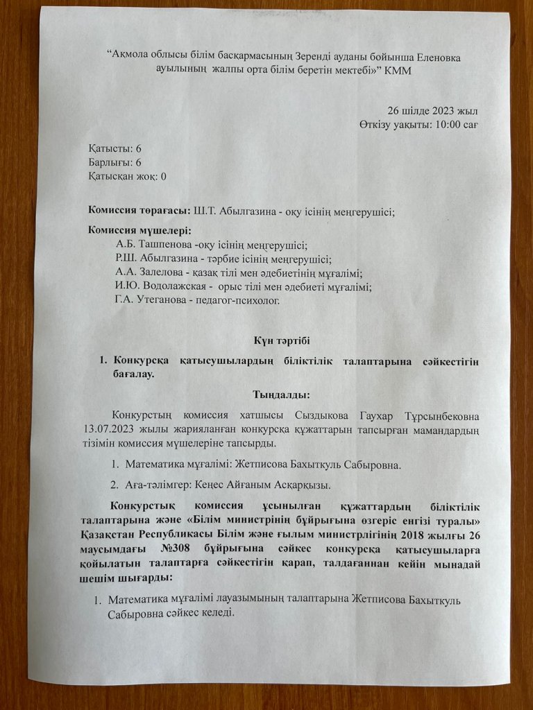 "Ақмола облысы білім басқармасының Зеренді ауданы бойынша білім бөлімі Еленовка ауылының жалпы орта білім беретін мектебі" КММ төмендегі лауазымға ашық конкурс жариялайды. Лауазымдық жалақы еңбек сіңірген жылдарына байланысты 135000 теңгеден 180000 теңгеге дейін.