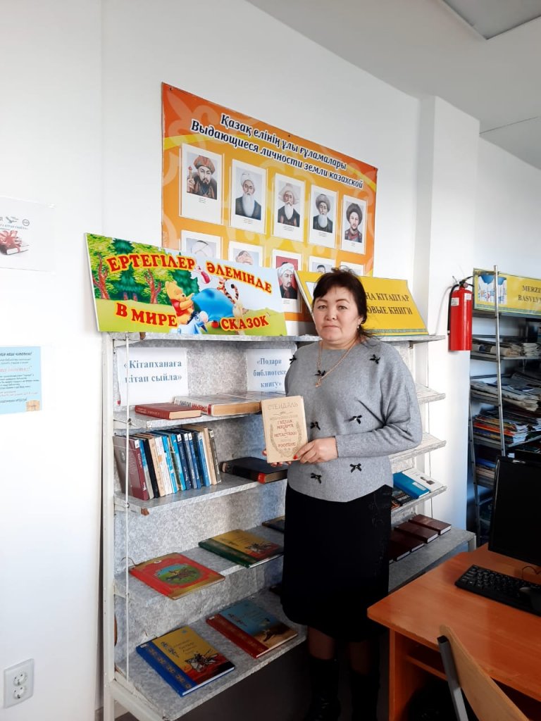 "Кітапханага кітап сыйла" акциясы аясында оқу ісі меңгерушісі Абылғазина Шахзада Теңдікқызы кітапхана қорын молайтуға ат салысып, орыс және қазақ тілдеріндегі бірнеше әдеби кітаптарды сыйға тартты.