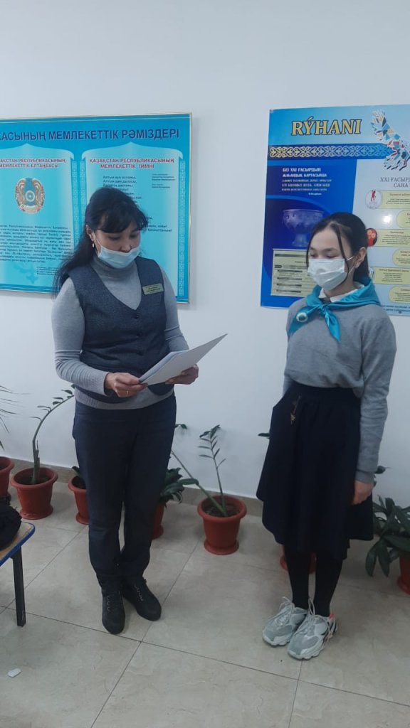 2021 жылдың 22 қарашасында 7 "а" сынып оқушылары Асқар Ақерке мен Жүнісова Жанбота Тұңғыш Президент күніне арналған аудандық "Бала би"байқауының 2-турына қатысты. 2 турдың қорытындысы бойынша "Зерде" командасы 3 орын алды. Қыздар мен топ жетекшісі Қазақ тілі мен...