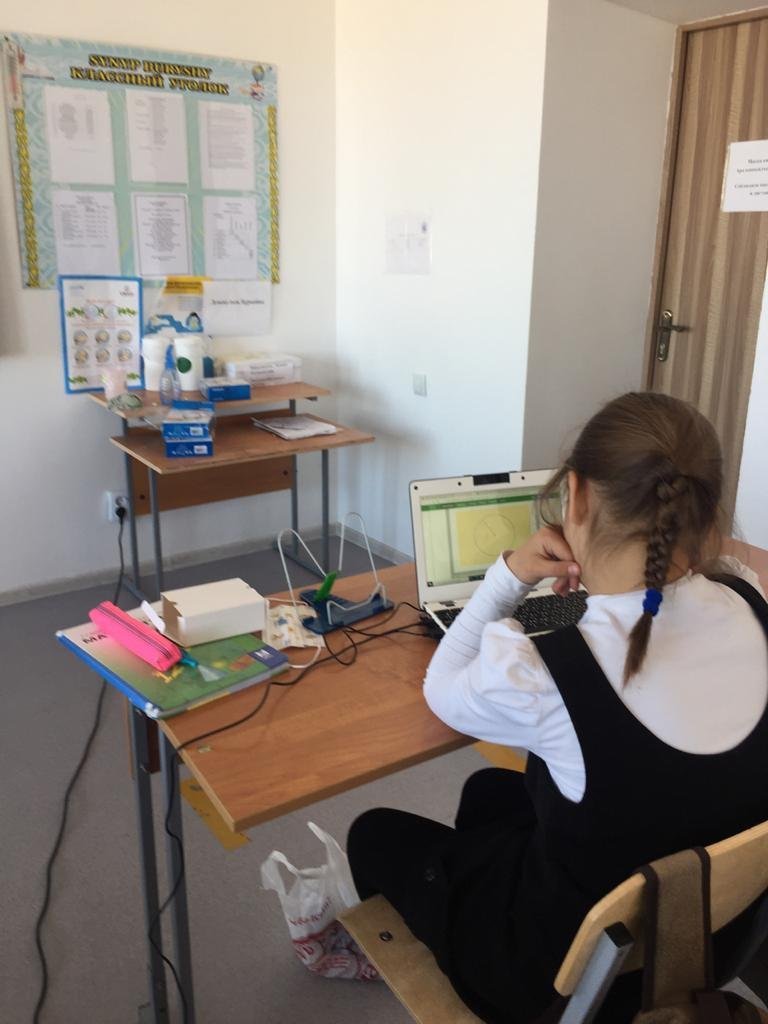 Математика сабағында 5 "Б" сынып оқушылары Bilim Land платформасы бойынша оқиды.