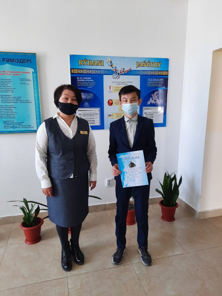 Поздравляем ученика 11 "А" класса СОШ с.Еленовка Коман Батырбека, занявшего II место в номинации "Өлең - сөздің патшасы, сөз сарасы" в XII районном конкурсе "Абай оқулары"