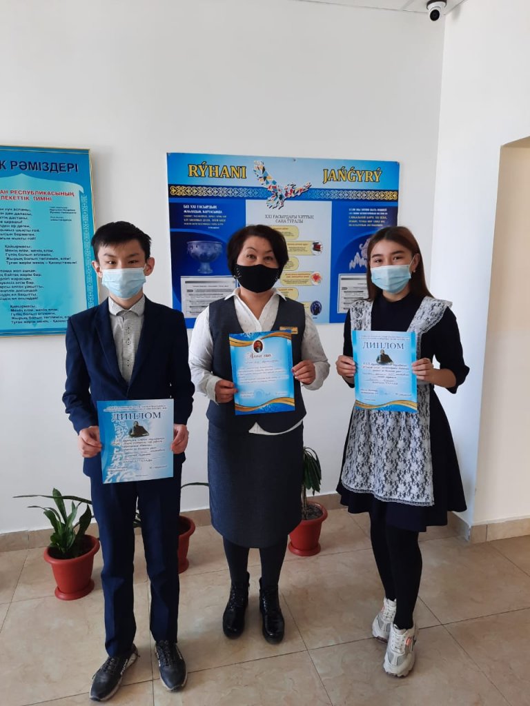 5 "А" сынып оқушылары математика пәні бойынша республикалық онлайн олимпиадаға қатысып, бірінші орындарға ие болды. Математика пәнінің мұғалімі Болатова Ырысты Балтабайқызы.