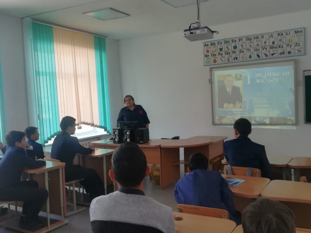 2019 жылы 27 қарашада орыс тілінде оқитын 7-8 сыныптарда ҚР Тұңғыш Президенті күніне арналған сынып сағаты өтті. Сабақ барысында балалар Н. Ә. Назарбаев және біздің Отанымыз – Қазақстан Республикасы туралы бейнероликтерді көрді,...