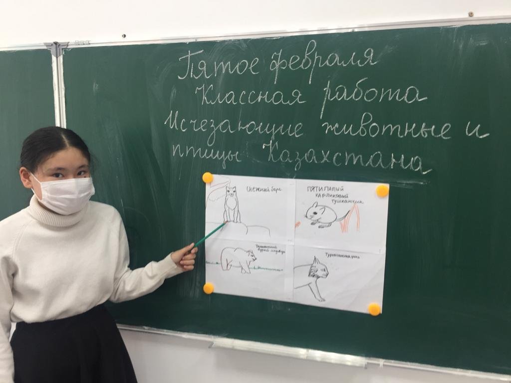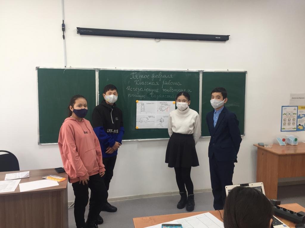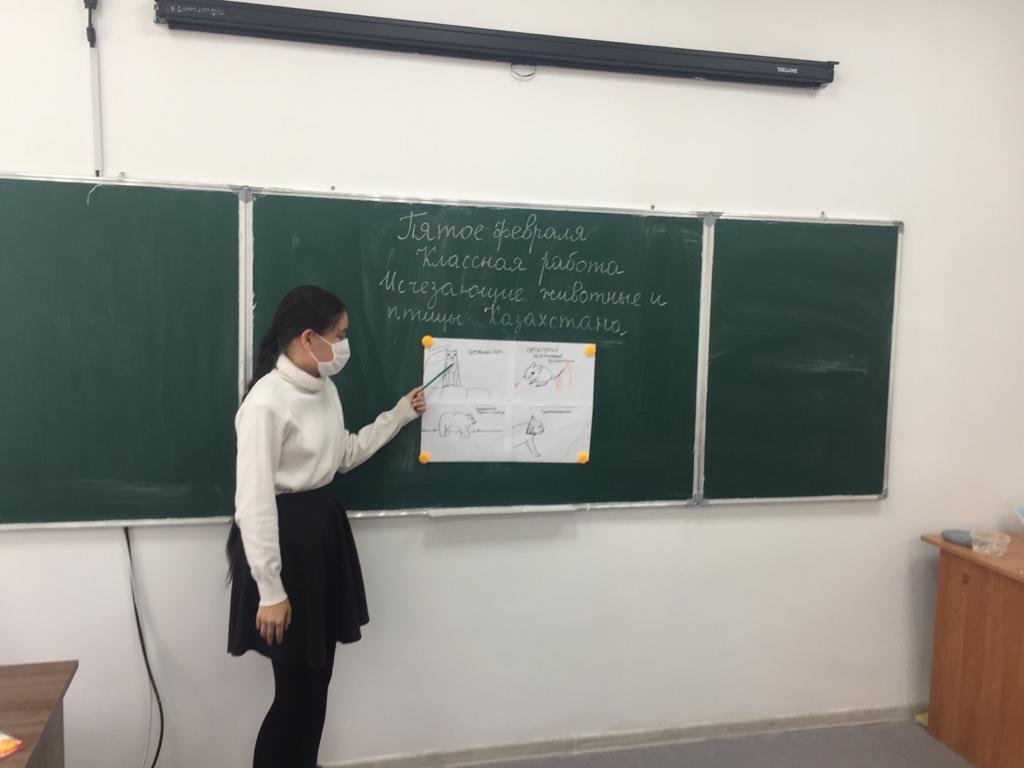8 "А" сыныбындағы орыс тілі мен әдебиеті сабағы. Сабақтың тақырыбы:"Қазақстанның жойылып бара жатқан жануарлары мен құстары". Жобаларды қорғау