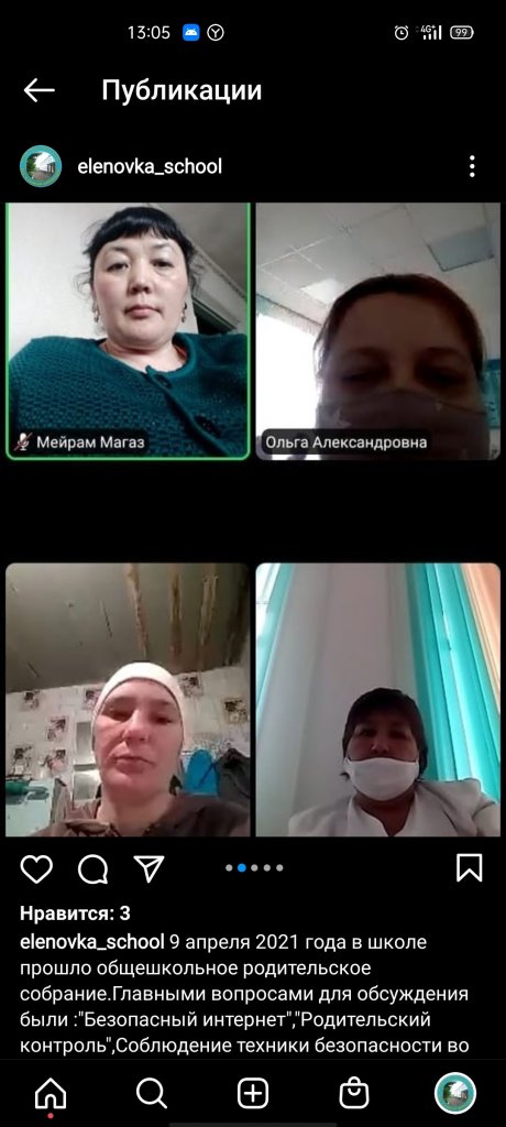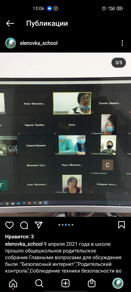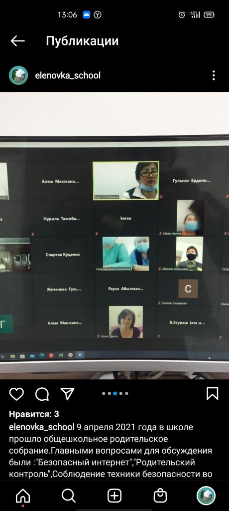 2021 жылы 9 сәуірде мектепте жалпыға бірдей ата-аналар жиналысы өтті, талқылаудың негізгі сұрақтары: «Қауіпсіз Интернет», «Ата-аналық бақылау», Көктемгі су тасқыны кезіндегі қауіпсіздік шараларын сақтау.