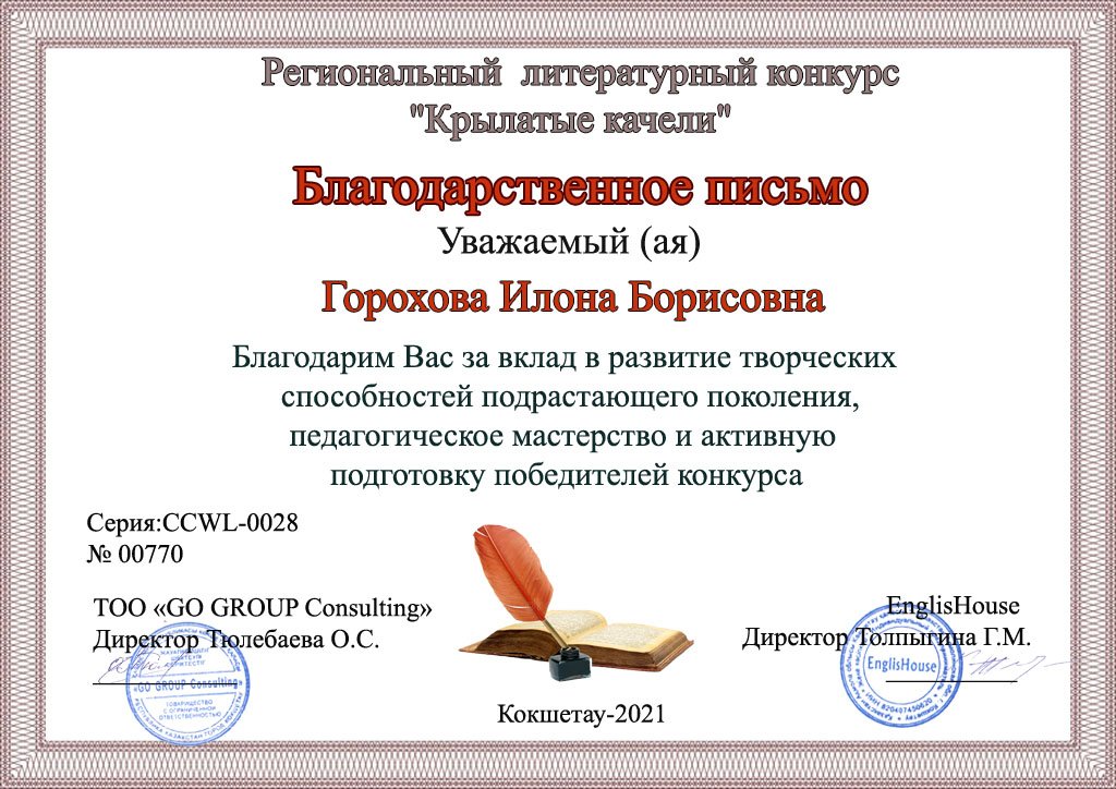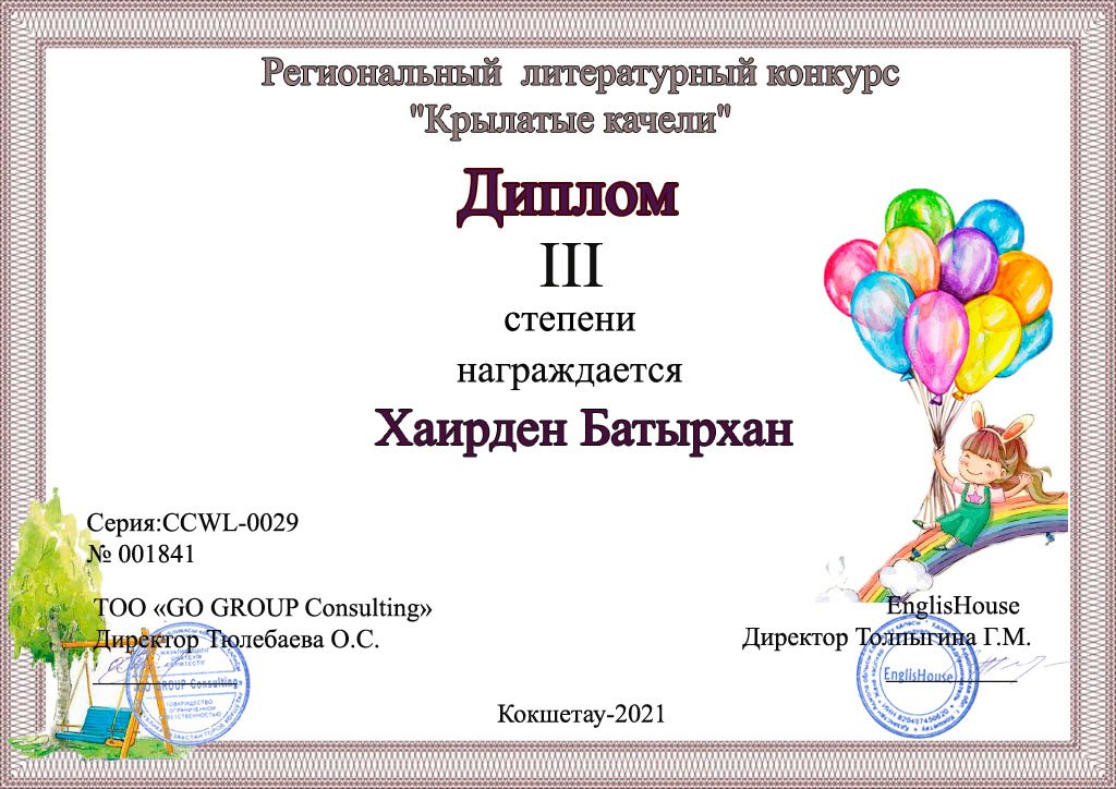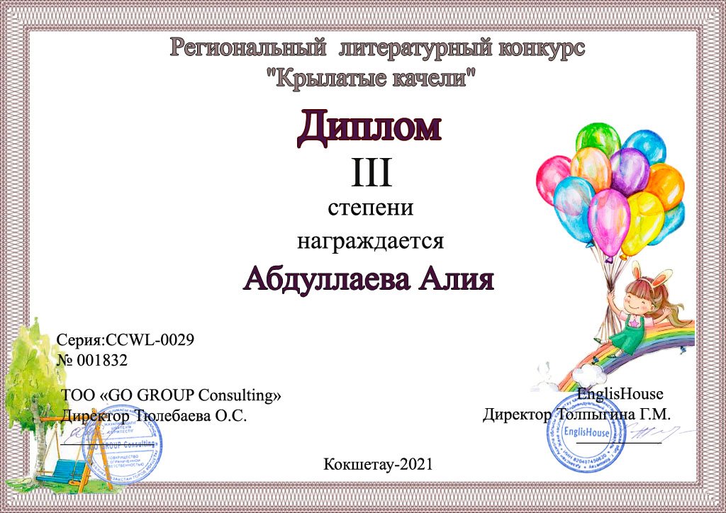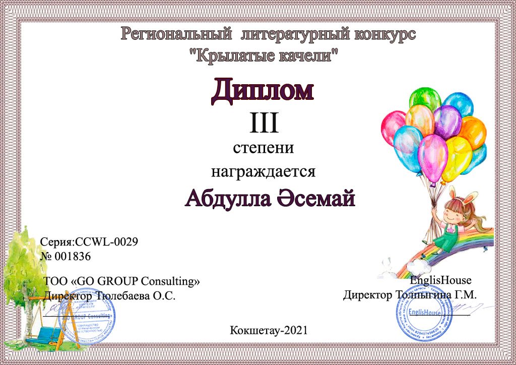 17-31 наурыз аралығында өткен "Қанатты әткеншек" атты аймақтық байқауда бастауыш сынып мұғалімдері алғыс хаттармен марапатталды. Қатысқан оқушылар 1,2,3 орын дипломдарымен марапатталды.