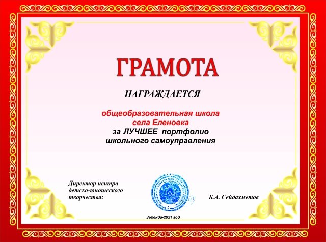 Мектептің өзін-өзі басқарудың үздік портфолиосы үшін аға тәлімгер О. А. Крецті құттықтаймыз!Барлық игілік тілейміз