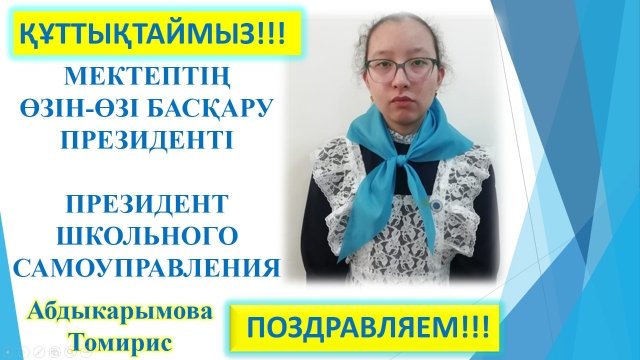 МЕКТЕПТІҢ ӨЗІН-ӨЗІ БАСҚАРУ ПРЕЗИДЕНТІ - Абдыкарымова Томирис