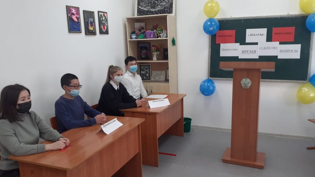 13 желтоқсанда тарих пәнінің мұғалімі Н. Н. Вадолажская 8-9 сыныптарда " Қазақстан жастары патриот па? Балалар өз пікірлерін білдірді, басқаларды тыңдады, қарсыласымен сабырлы, мейірімді түрде пікірталас өткізді. Қатысушылар талқыланған идеяға қарсы және қарсы дәлелдер келтірді, қарсыластарын таңдалған ұстанымның дұрыстығына сендіруге тырысты.
