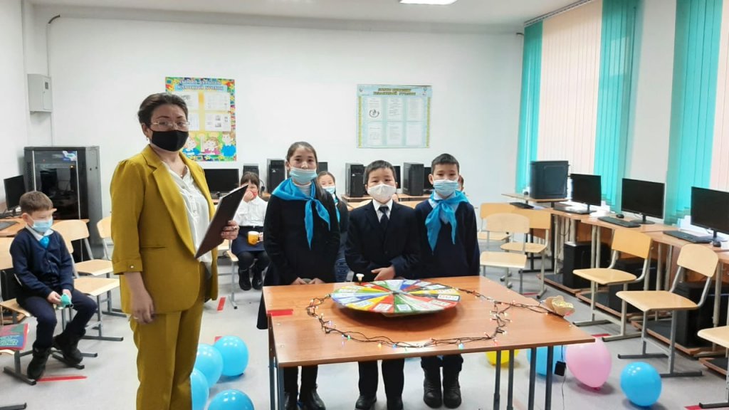 Ағылшын тілі мұғалімі Айтеева Гульназ Ерденовна 4 А сынып оқушыларымен "Ғажайып алаң"ойынын өткізді. Іс-шараның мақсаты-шет тілін үйренуге деген сүйіспеншілікті арттыру, жазу және сөйлеу дағдыларын дамыту. Ойын 5 турдан тұрды, балалар сөздерді тауып, сұрақтарға жауап берді.
