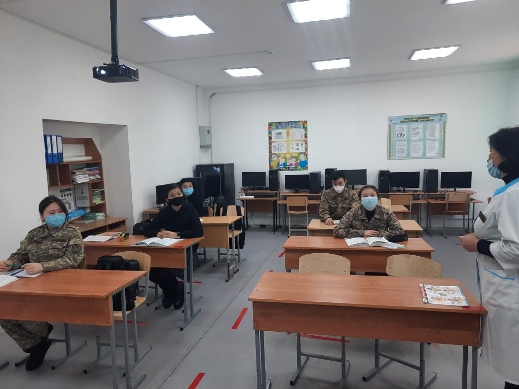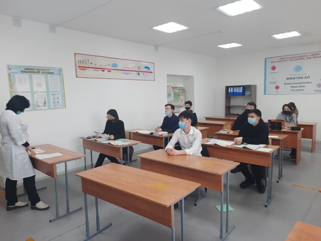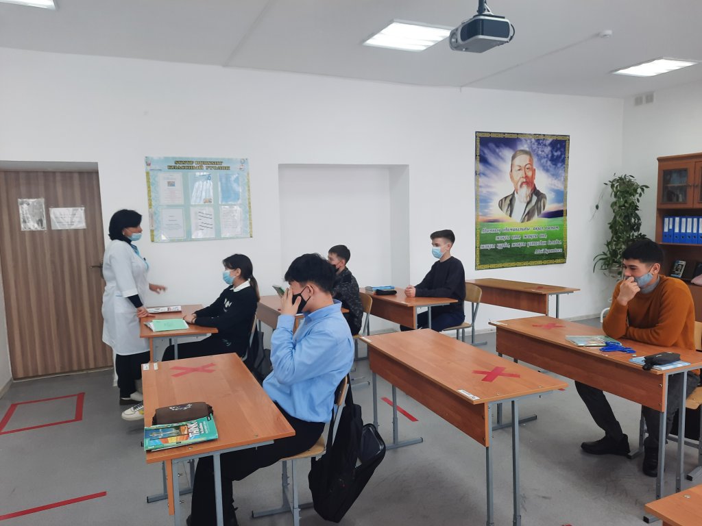 Мектептің медицина қызметкері Каримбаева Жания Турсынгалиевна вакцинация бойынша 6-11 сынып оқушыларымен әңгіме өткізді. Ол вакцина және вакцинация кезеңдері туралы айтты