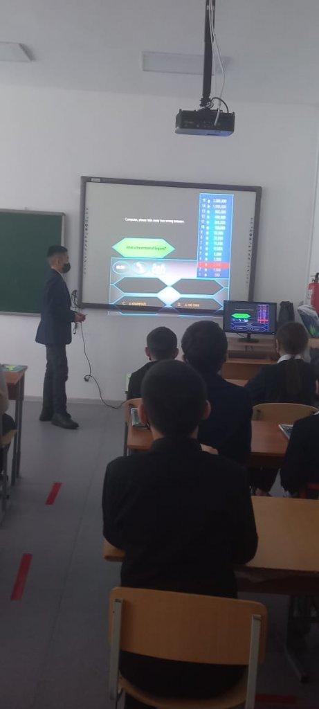 31 Қаңтарда ағылшын тілі мұғалімдері Г. Е. Айтеева мен Ж. Б. Таженова 6 А сыныбында сыныптан тыс іс-шара өткізді..Сабақта балалар грамматиканы, уақыт пен орын предлогтарын, салыстыру дәрежесін және т. б. қайталады.
