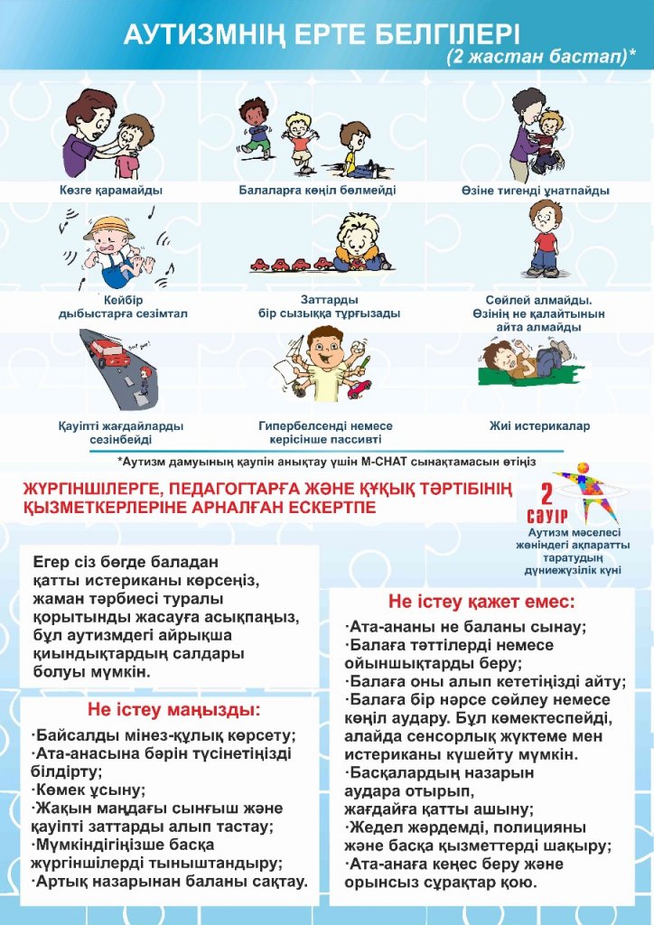 Сіз өз баланызда ерекше мінез-құлық байкадынызба? Жадынама сізге баланың аутизмнің бар-жоғын және сізге маманның көмегі қажет пе екенін анықтауға көмектеседі.