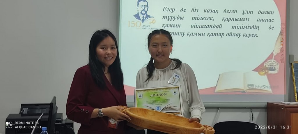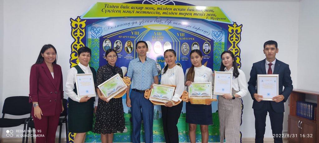 Зеренді ауданы әкімдігінің «Тілдерді оқыту орталығы» КММ ұйымдастырған Қазақ елінің мерейлі мерекесі-Қазақстан халқы тілдер күніне және кемеңгер қоғам қайраткері Ахмет Байтұрсынұлының 150 жылдық мерейтойына орай ұйымдастырылған «Ұлт ұстазы» атты аудандық байқауында Еленовка ауылының ЖОББМ КММ қазақ тілі және әдебиет пәнінің мұғалімі Болатова Сания Сериевна І орынға ие болды.