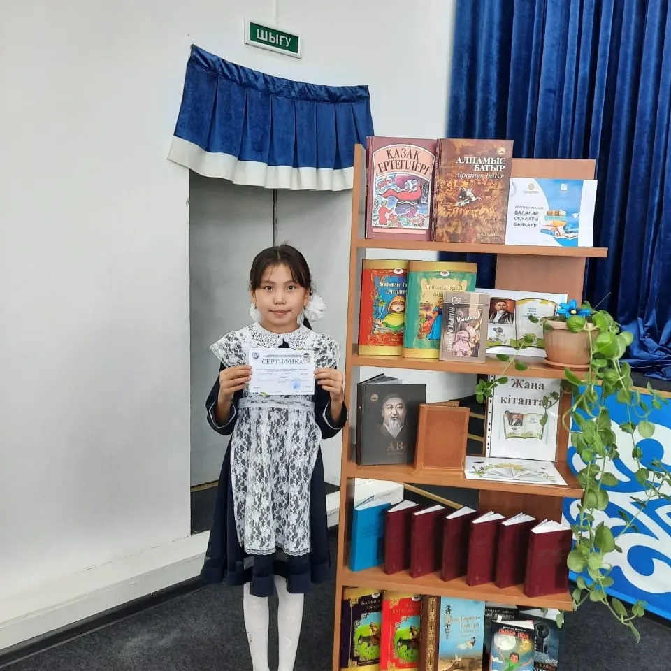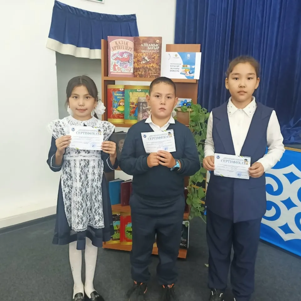 23 қыркүйек күні Республикалық оқырмандар сайысының аудандық кезеңінен 4 А сынып оқушылары төмендегідей нәтиже қол жеткізді Макрам Айсара "Жас тілші" номинациясы бойынша марапаталса,ал Даулетбаев Дауренбек "Озат оқырман" номинациясына ие болды.3 оқушымыз арнайы сертификатқа ие болды:Ермек Ақниет,Атейхан Үміт,Жоламан Нияз. Сынып жетекшісі: Файзулина Г.Т,кітапханашы Ержанова А.К.