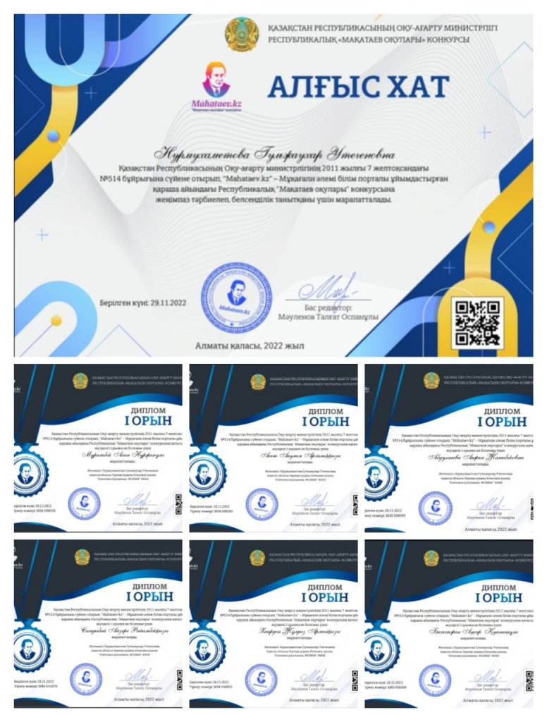 Мұқағали Мақатаевтың өлеңдерін оқудың Республикалық байқауы өтті, оған мемлекеттік тілде оқытатын 1-4 сынып оқушылары қатысты. Қорытындысы бойынша оқушылар 1,2,3 жүлделі орынға ие болды, ал басшылар алғыс хаттармен марапатталды.