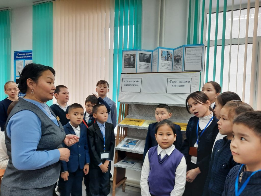 "Осы күннің батырлары" атты тақырыбында әңгіме жүргізілді. Мақсаты: оқушыларды өз еліне, жеріне, халқына деген жауапкершілік пен адамгершілікке тәрбиелеу. 4 "А" сынып мұғалімі Файзулина Гульжан Турсуновна мен мектеп кітапханашысы Ержанова А.Қ.