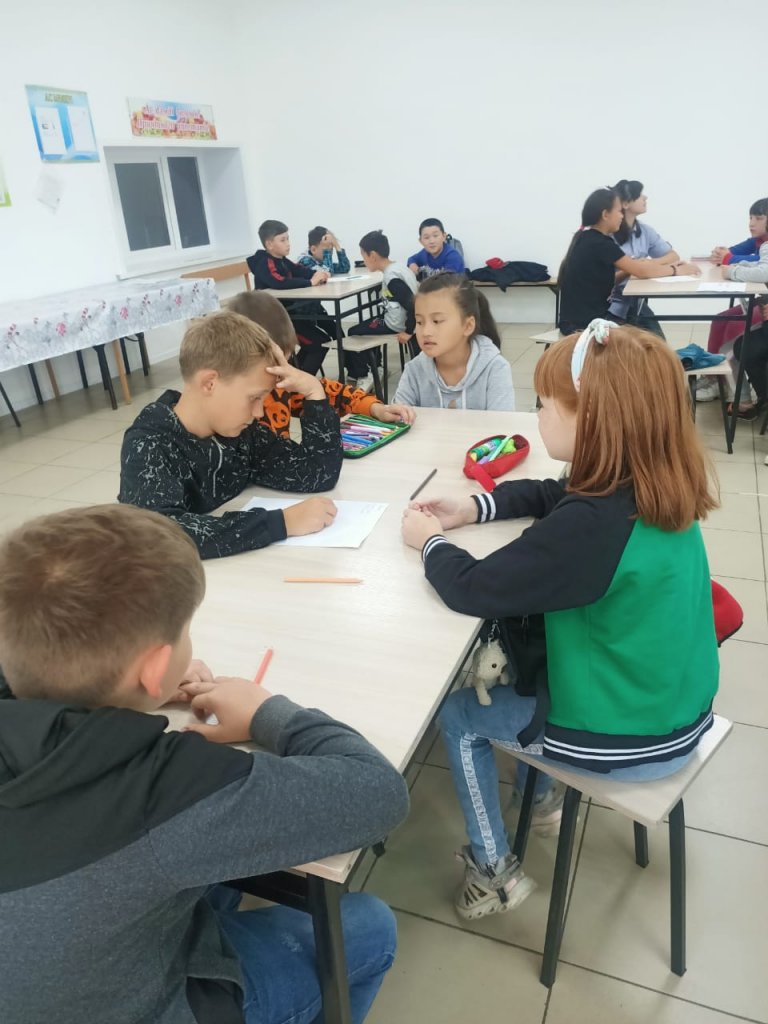 Педагог-психолог Утеганова Г.А " Сикырлы әріптер" атты тренинг өткізді. Таза ауада қимыл-қозғалыс ойындары ұйымдастырылып, оқушылар өте керемет көңіл-күймен үйлеріне кетті. Лагерь тәлімгерлері Файзулина Г.Т. мен Нурмухаметова Г.У.