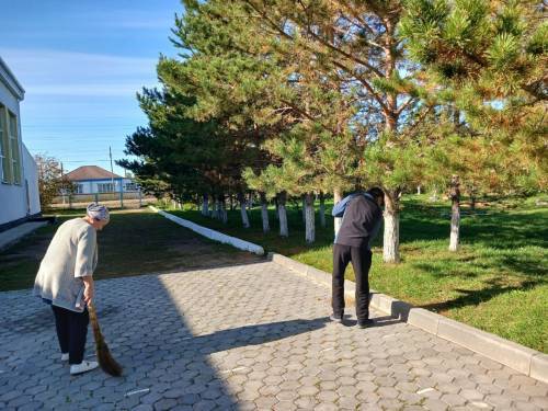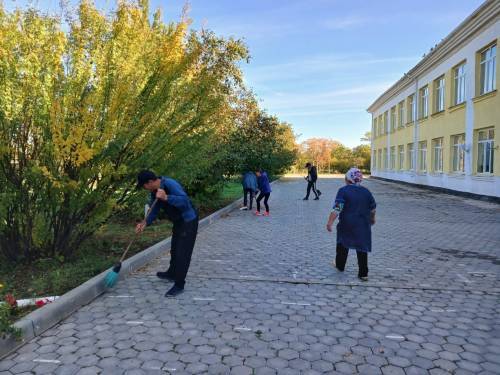 15 қыркүйек пен 15 қазан аралығында облыс әкімінің қаулысына сәйкес "Таза бейсенбі" күзгі санитарлық тазалық айлығы өту аясында, мектеп қызметкерлері тазалық жұмыстарын жүргізуде.
