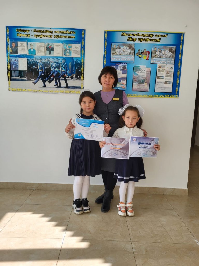 11.10.2023 ж Сайран Айсауле 2"А"сынып оқушысы Ілияс Жансүгіров оқуларына қатысып 1-орынды иеленді. Абдуллаева Аяжан 2"А" сынып оқушысы Кенгуру олимпиадасына қатысып бірінші дәрежелі дипломға ие болды. Сынып жетекші: Нурмухаметова Гульжаухар Утегеновна.