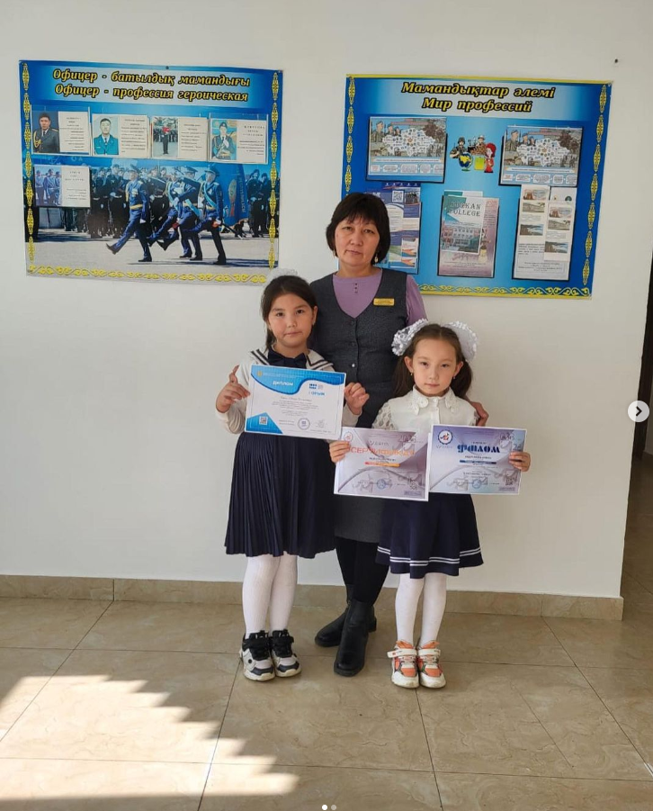 13.10.2023 ж Сайран Айсауле 2"А"сынып оқушысы Ілияс Жансүгіров оқуларына қатысып 1-орынды иеленді. Абдуллаева Аяжан 2"А" сынып оқушысы Кенгуру олимпиадасына қатысып бірінші дәрежелі дипломға ие болды. Сынып жетекші: Нурмухаметова Гульжаухар Утегеновна.