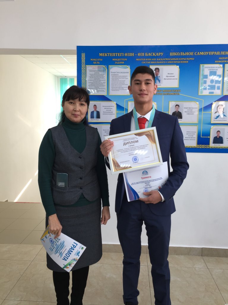 16 желтоқсан- Қазақстан Республикасының Тәуелсіздік күніне орай ұйымдастырылған "Менің елім- Тәуелсіз Қазақстан!" атты аудандық байқауында І орын алған Маратов Рауан және ІІІ орын алған Шегельбергер Алеся 3 дипломмен марапатталды