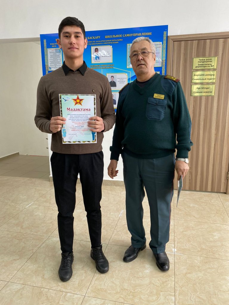 КММ Еленовка ауылының ЖОББМ Кеңес әскерлерінің Ауған елінен шығарылғанына 35 жыл толуына орай ұйымдастырылған мектепшілік әскери-патриоттық сайыста “ АК-74 автоматын бөлшектеу және құрастыру”, “Қолды жазып бүгу”, “Денені жатып көтеру”, “ Биік белтемірге тартылу” номинацияларымен марапатталды.