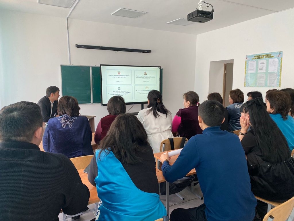 Мектеп басшысы Н.Жылқыбай барлық педагогикалық ұжыммен "Педагогтерді аттестаттаудан өткізу қағидалары мен шарттарын" түсіндіру мақсатында кеңес өткізді. Кеңес барысында барлық жаңашылдықтарға тоқталып, мұғалімдердің қойылған сұрақтарына жауап берілді.