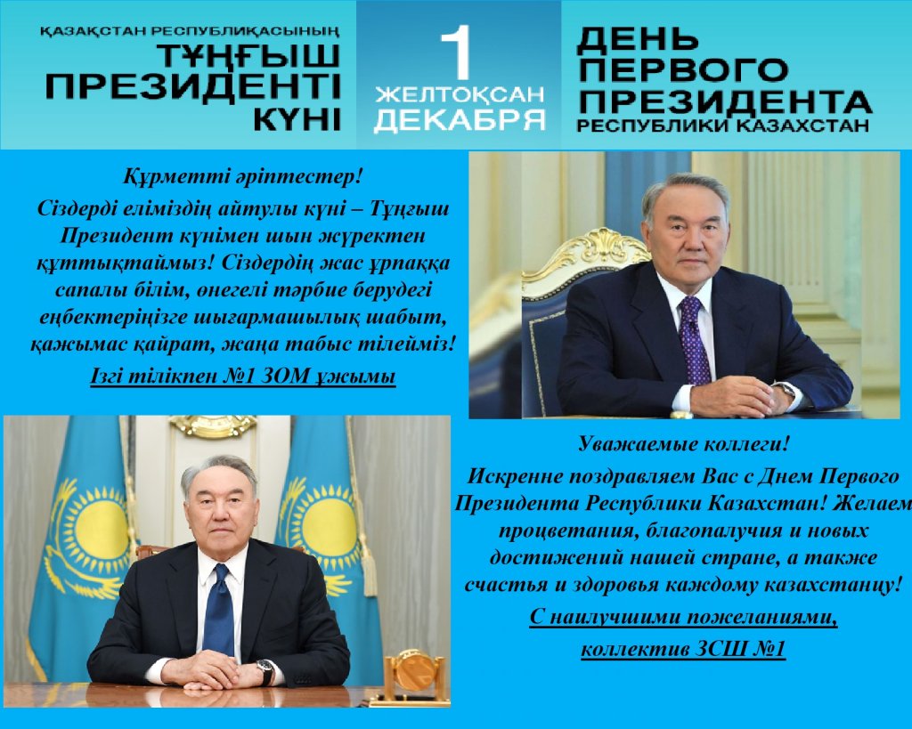 Қазақстан Республикасының тұңғыш Президенті күнімен құттықтаймыз!
