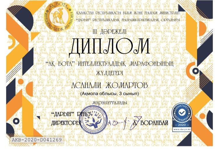 Республикалық, "Ақ бота" интеллектуалдық марафонына қатысып 3 А сынып оқушылары төмендегі жүлделі орындарға ие болды: